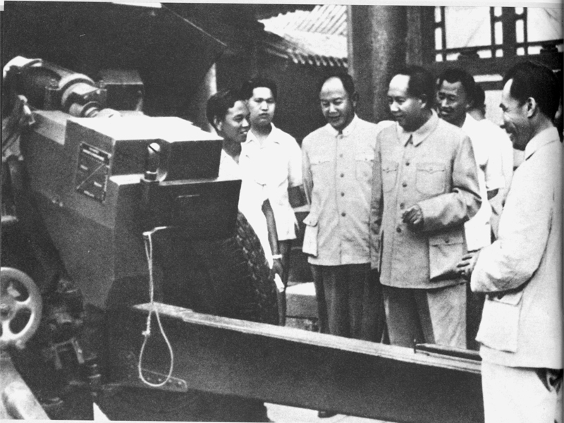 1958年6月6日毛澤東主席在國防工業(yè)匯報(bào)展覽會(huì)兵器館仔細(xì)觀看54式122毫米榴彈炮