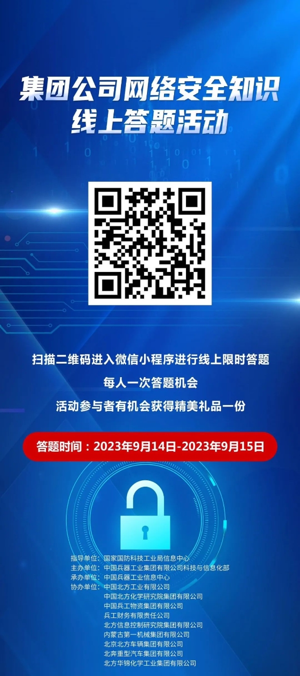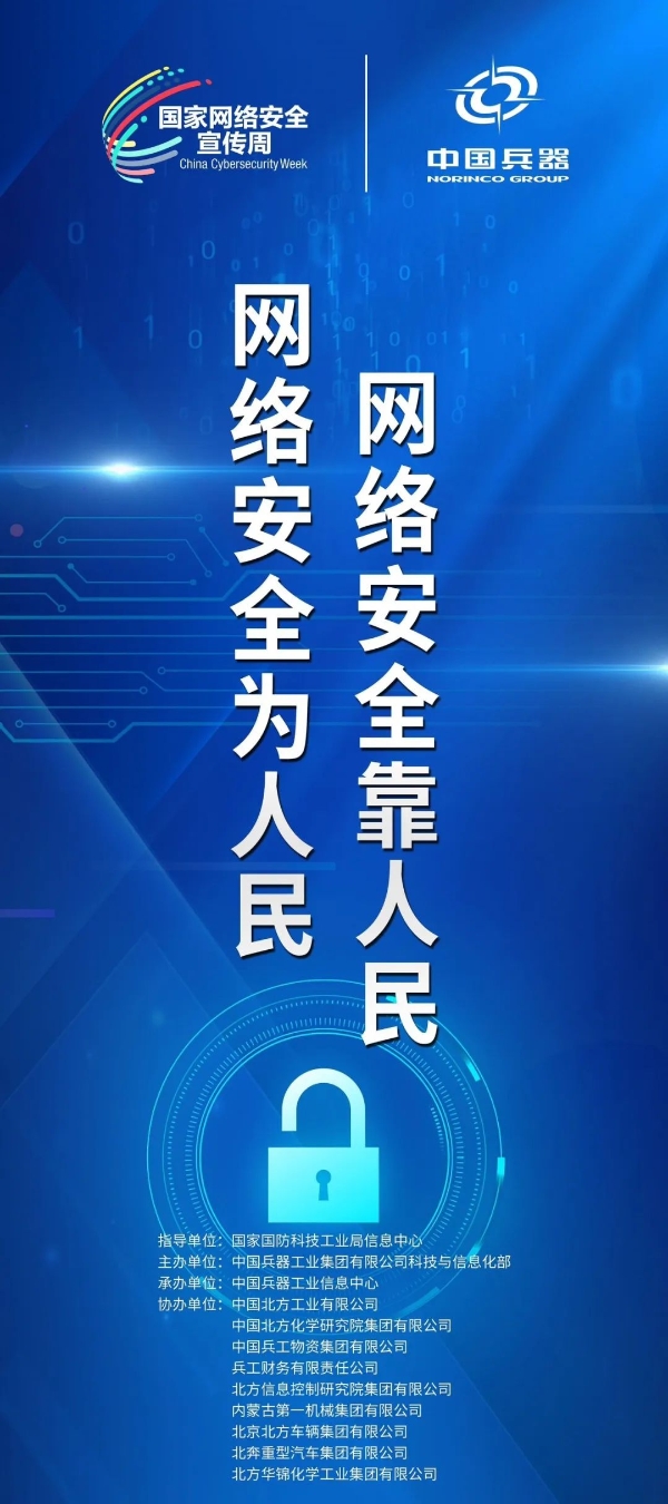 9月11日至17日,中國(guó)兵器工業(yè)集團(tuán)有限公司以“數(shù)字創(chuàng)新 智御未來(lái)”為主題,圍繞集團(tuán)公司“1+5”戰(zhàn)略和“雙十”規(guī)劃,組織開展集團(tuán)公司網(wǎng)絡(luò)安全宣傳周系列活動(dòng)。 9月11日,集團(tuán)公司科技與信息化部組織在京單位召開網(wǎng)絡(luò)安全宣講與經(jīng)驗(yàn)交流活動(dòng),邀請(qǐng)公安部第一研究所網(wǎng)絡(luò)安全專家針對(duì)網(wǎng)絡(luò)安全形勢(shì)和個(gè)人防護(hù)技能以及網(wǎng)絡(luò)安全等級(jí)保護(hù)主要工作環(huán)節(jié)和標(biāo)準(zhǔn)應(yīng)用作專題講座,會(huì)上北方公司、物資集團(tuán)、財(cái)務(wù)公司、北方車輛集團(tuán)、北奔重汽進(jìn)行了工作經(jīng)驗(yàn)分享。