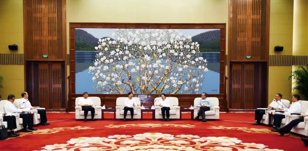 程福波、劉大山同兵器裝備集團(tuán)黨組書記、董事長許憲平,總經(jīng)理、黨組副書記張玉金舉行會談